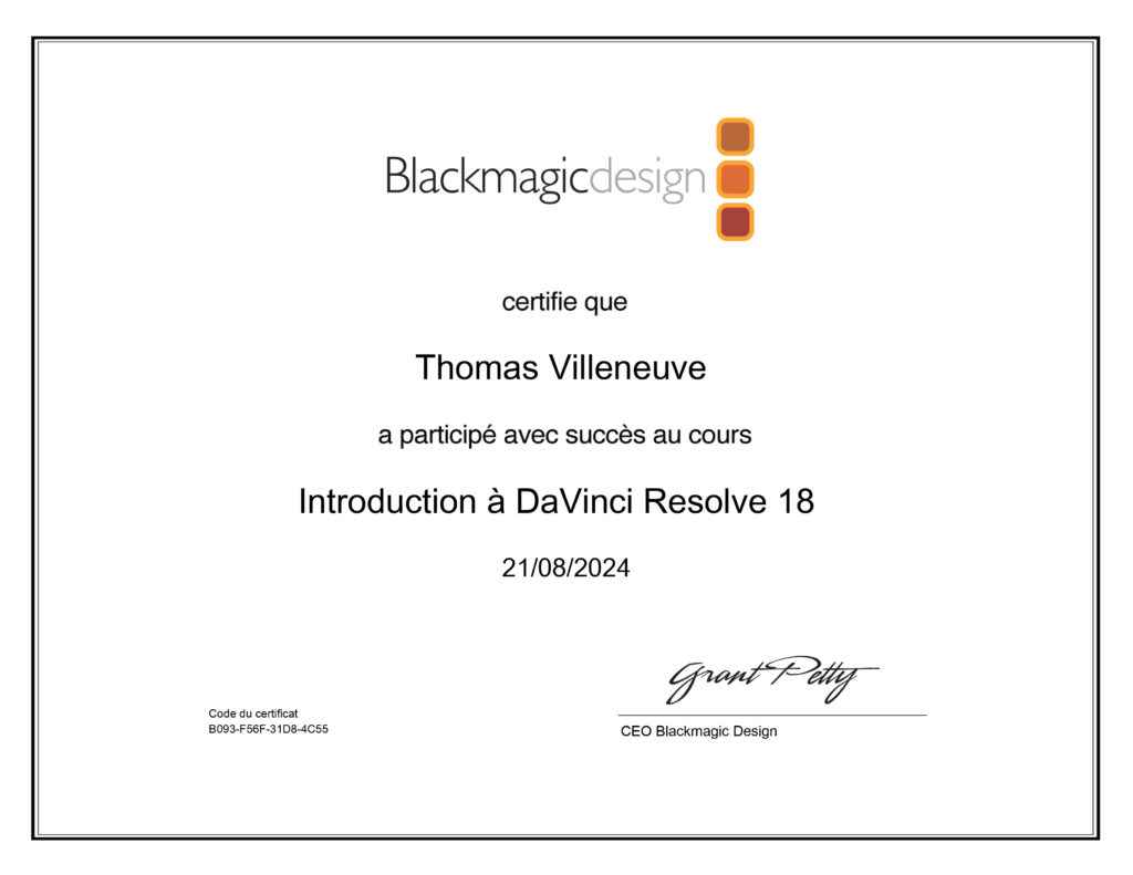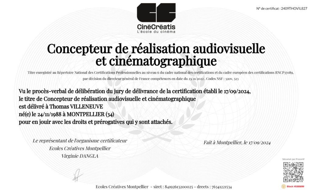 Titre RNCP: Concepteur de réalisation audiovisuelle et cinématographique.
